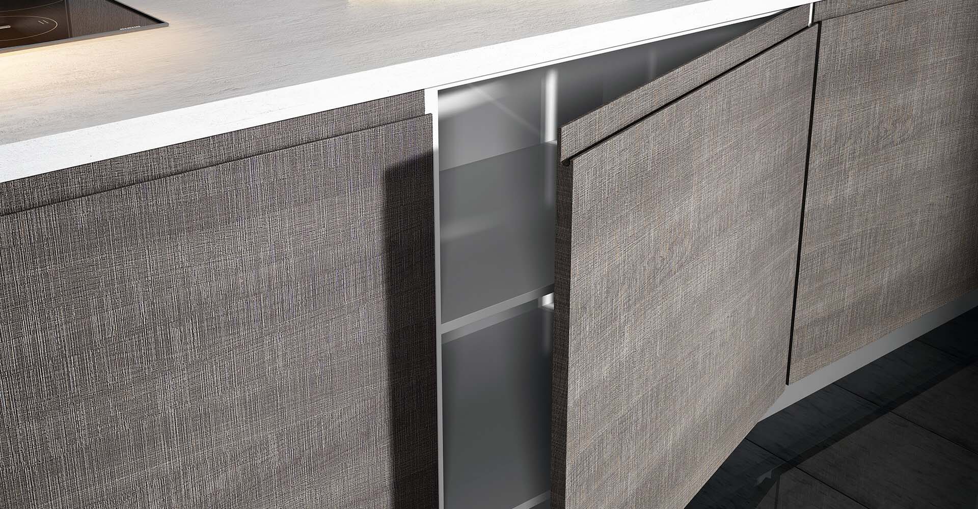 It gives a striking look, with an uninterrupted flow of cabinets.